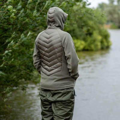 Hibridna jakna za slojevito odijevanje: prednji i stražnji paneli ispunjeni su 90/10 guščjim paperjem za visoku toplinu uz malu težinu, dok su rukavi i kapuljača od mekog flisa za udobnost i slobodu kretanja. Puni prednji patent olakšava oblačenje, a elastične manšete i podesivi donji porub drže toplinu uz tijelo. Bočni džepovi s patentima i unutarnji džep s patentom čuvaju sitnice na sigurnom, a kapuljača se podešava elastičnom uzicom.