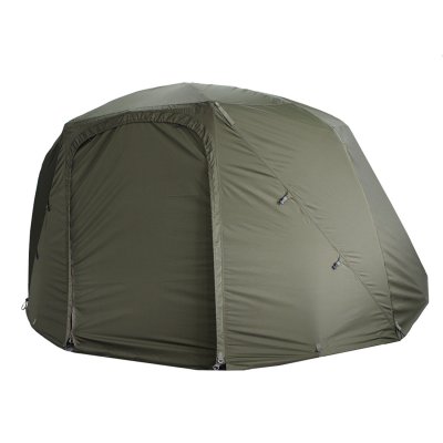 Vanjska cerada unaprijeđena je novim Cloudbase+™ materijalom vodootpornosti 16.000 mm HH, koji je lagan, izdržljiv i iznimno otporan na kišu. Oblik okvira s visokom, ravnom stražnjom stranom i strmim bočnim stijenkama osigurava maksimalan unutarnji prostor, idealan za duže ribolovne sesije u Hrvatskoj, UK-u ili ostatku Europe. Prednji, produženi krov s rain drip guard zaštitom dodatno štiti ulazni dio i savršene je veličine za zaštitu šatora i opreme od vremenskih uvjeta.