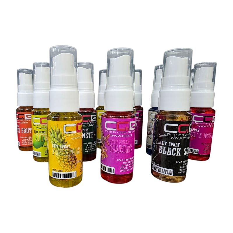 CCB Bait Spray je visoko koncentrirani atraktor u praktičnom spreju namijenjen za brzo pojačavanje mirisa i okusa mamaca. Idealan je za korištenje na boiliama, peletima, pop-up mamcima, wafterima, kukuruzu ili drugim mamcima kada želite dodatno povećati njihovu privlačnost.