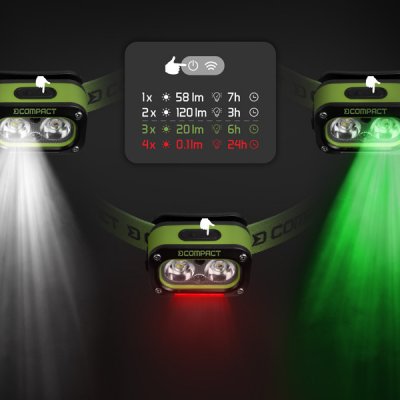 Delphin naglavna lampa COMPACT 3W/120lm/1200mAh - 10 %