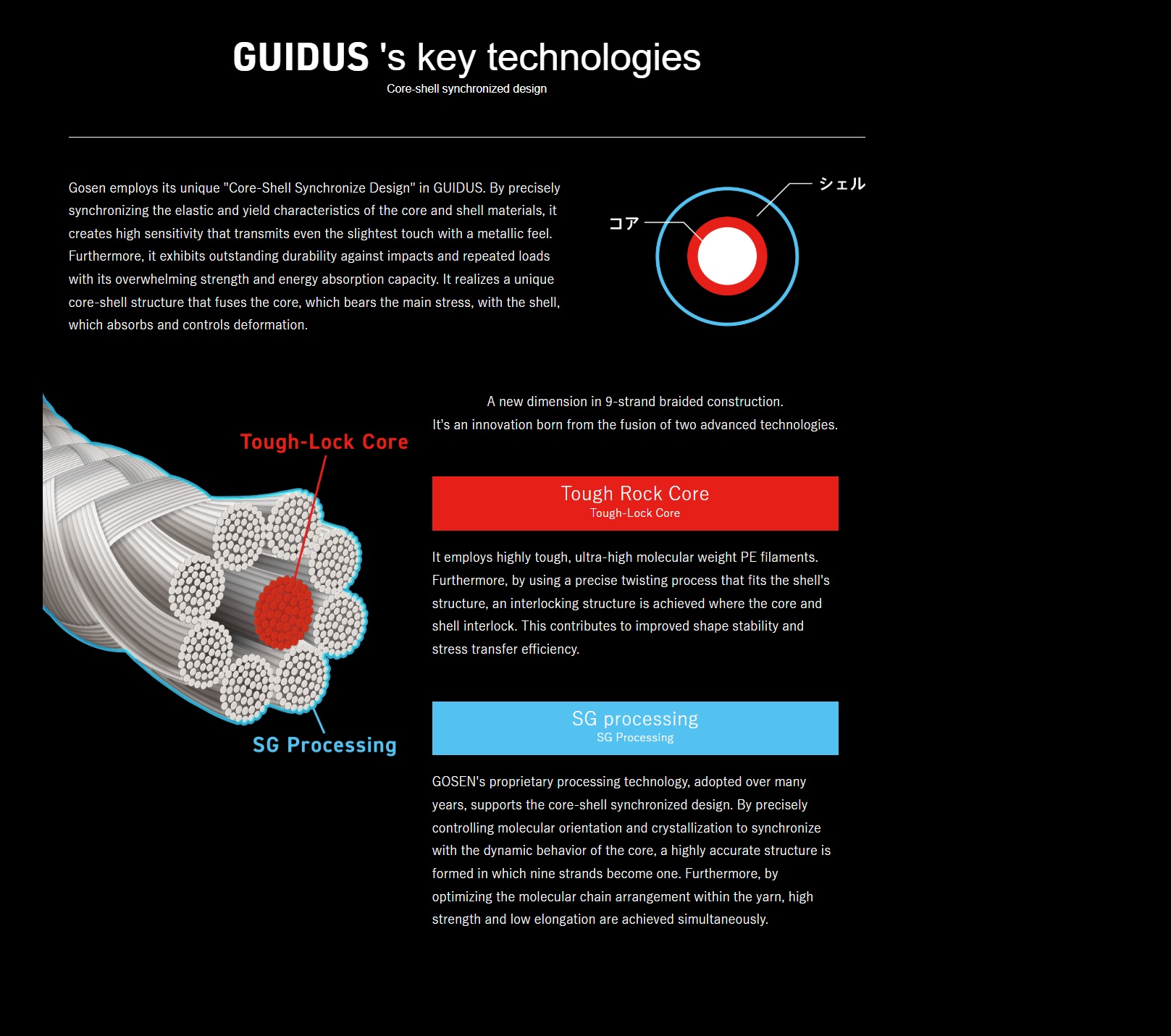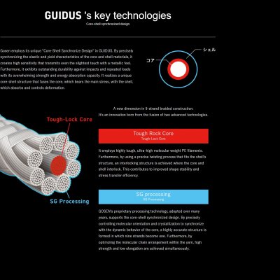 GUIDUS PE×9 je nova vrhunska 9-strand PE upredenica razvijena od strane japanskog proizvođača Gosen Co., Ltd.. Dizajnirana je kako bi ribolovcu omogućila maksimalnu osjetljivost, kontrolu varalice i pouzdanu snagu u svim modernim tehnikama ribolova.