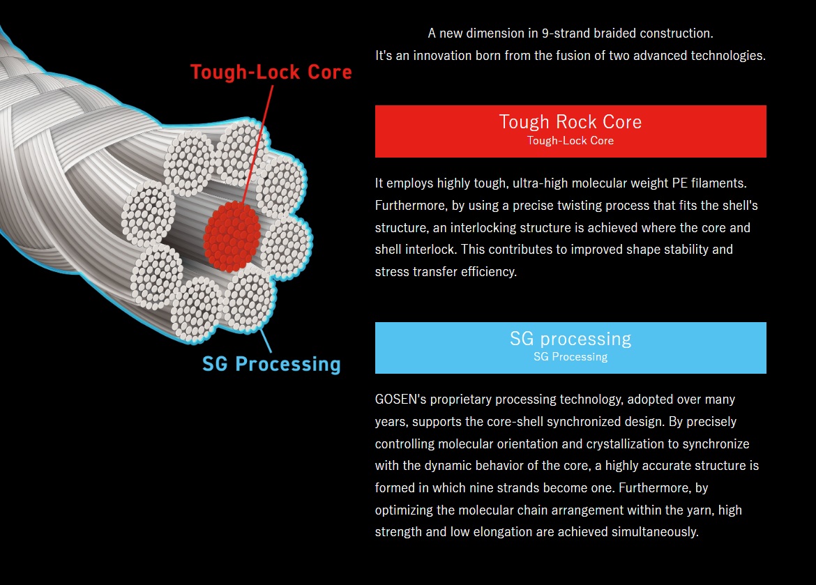 - Jedinstvena 9-nitna konstrukcija gdje su jezgra (core) i vanjska pletenica (shell) precizno usklađene.
