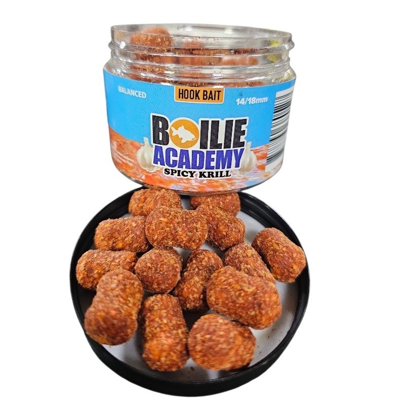 Boilie Academy Spicy Krill Balanced Dumbell razvijen je za prirodnu i vrlo učinkovitu prezentaciju mamca. Balanced (wafter) struktura omogućuje lagano lebdenje mamca iznad dna, dok dumbell oblik poboljšava rad udice i olakšava usisavanje. Takva prezentacija daje prirodniji položaj mamca i povećava broj realiziranih grizeva.