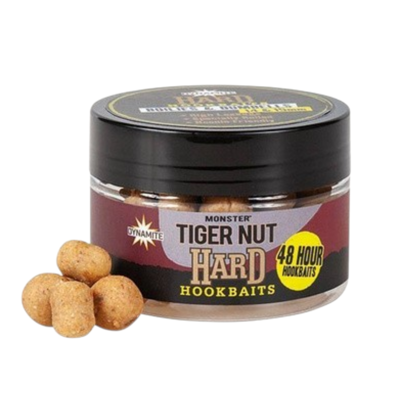 Dynamite Baits Tiger Nut Hard Hookbaits Dumbells razvijene su kao izdržljiv hookbait za situacije kada trebaš dugotrajnu prezentaciju i maksimalnu pouzdanost na dnu. Temeljene na provjerenom tiger nut (tigrasti oraščić) profilu, ove boile pružaju prirodan, slatki signal kojem šarani teško odolijevaju.