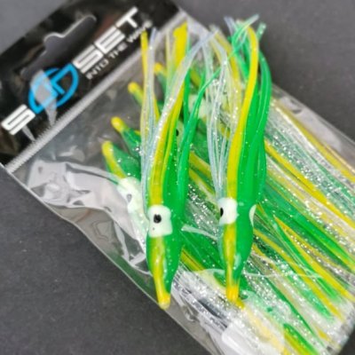 • Sunset Octopus suknjice izrađene su od meknog silikona, namjena im je stavljanje na jiggove, kabure ili inchiku varalice.